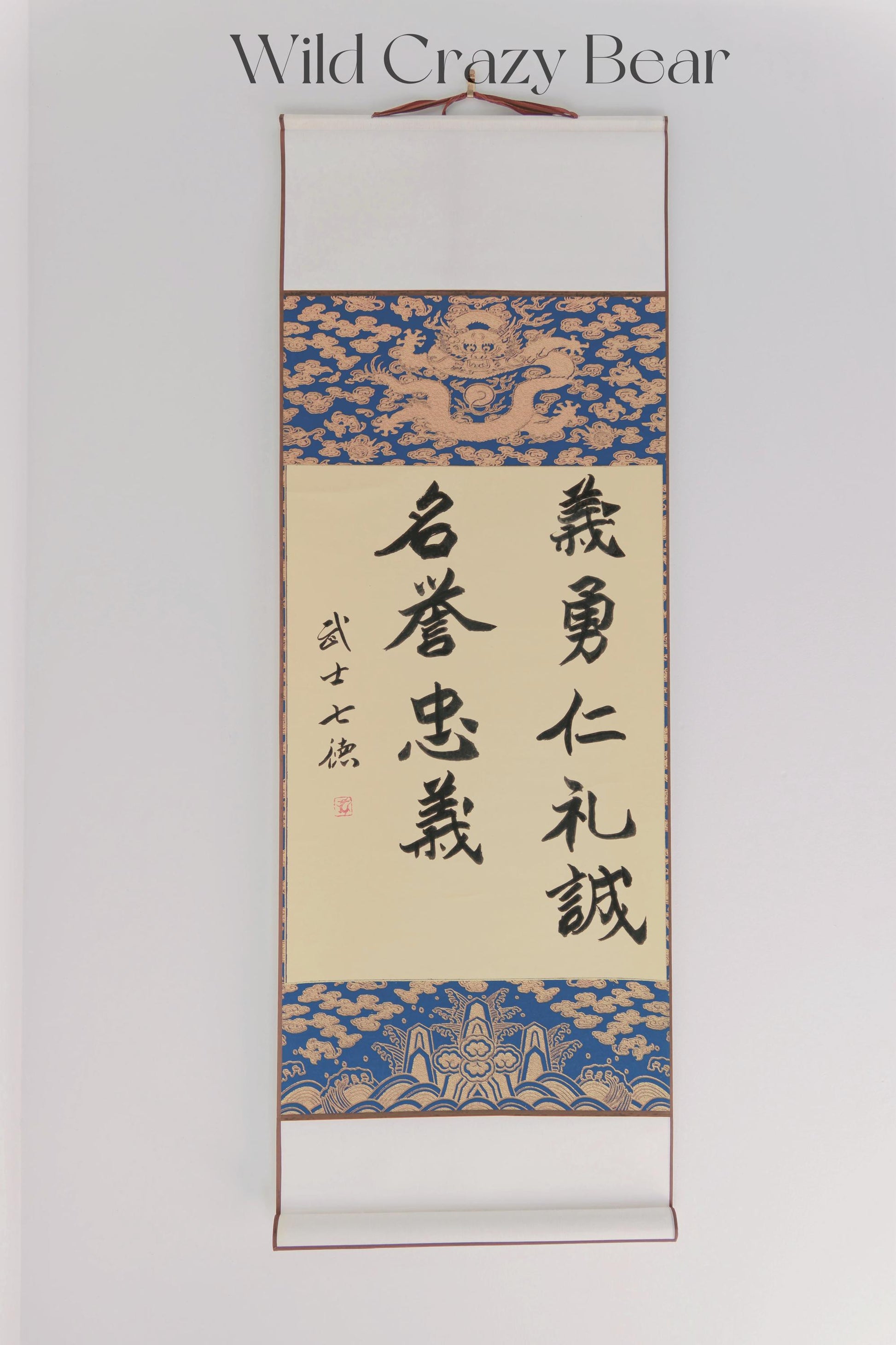 Moral code samurai Tokonoma calligraphy, Makinono the warrior's way, Spiritual Rituals gifts, Kakemono Samurai