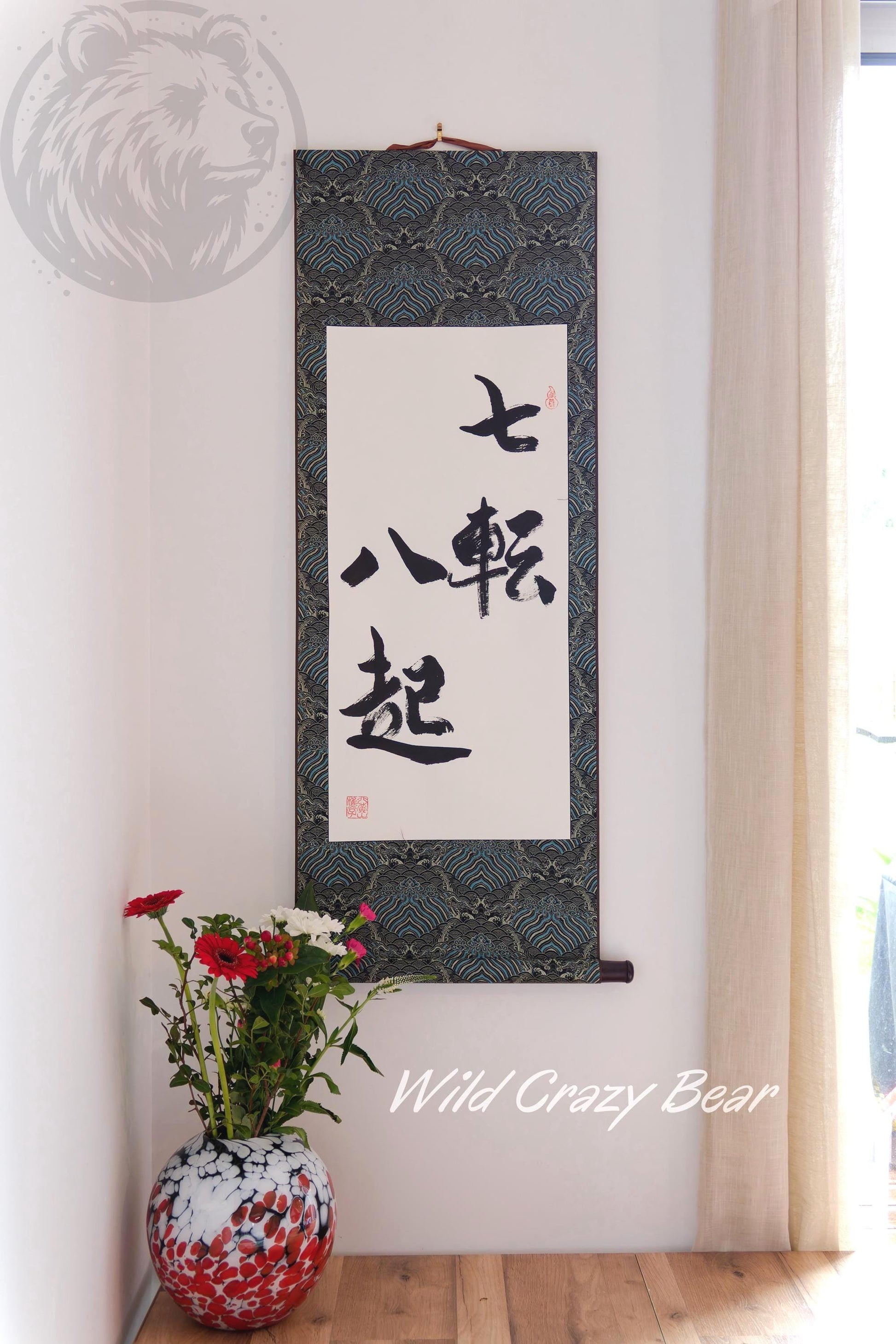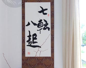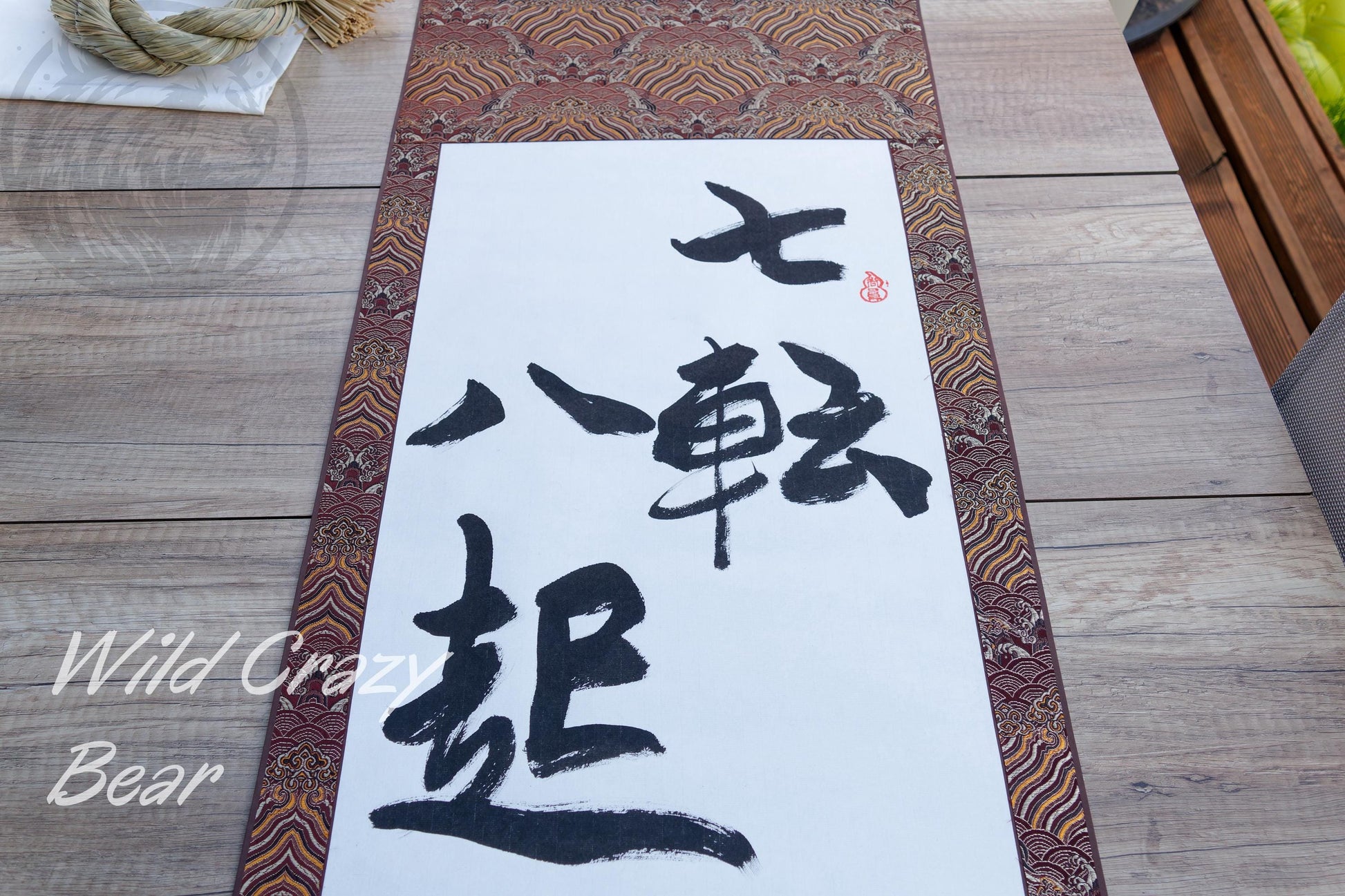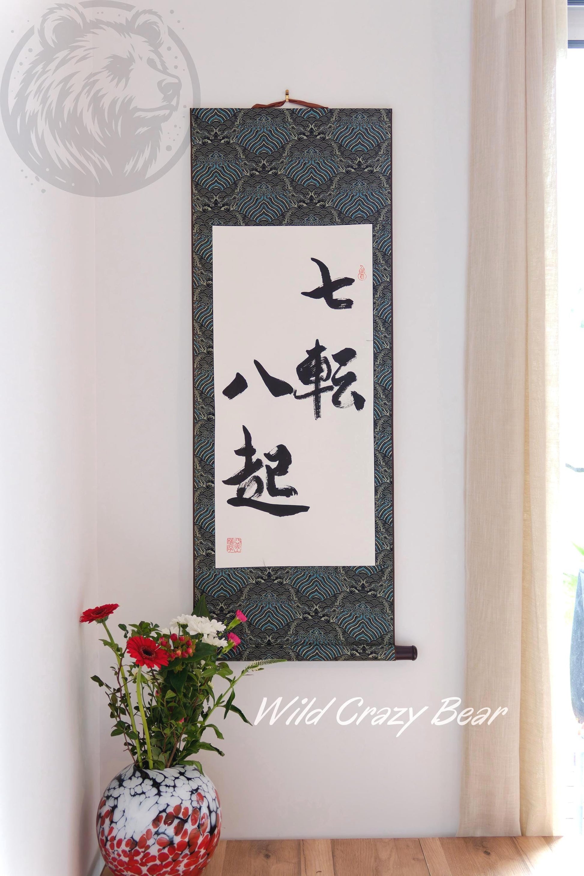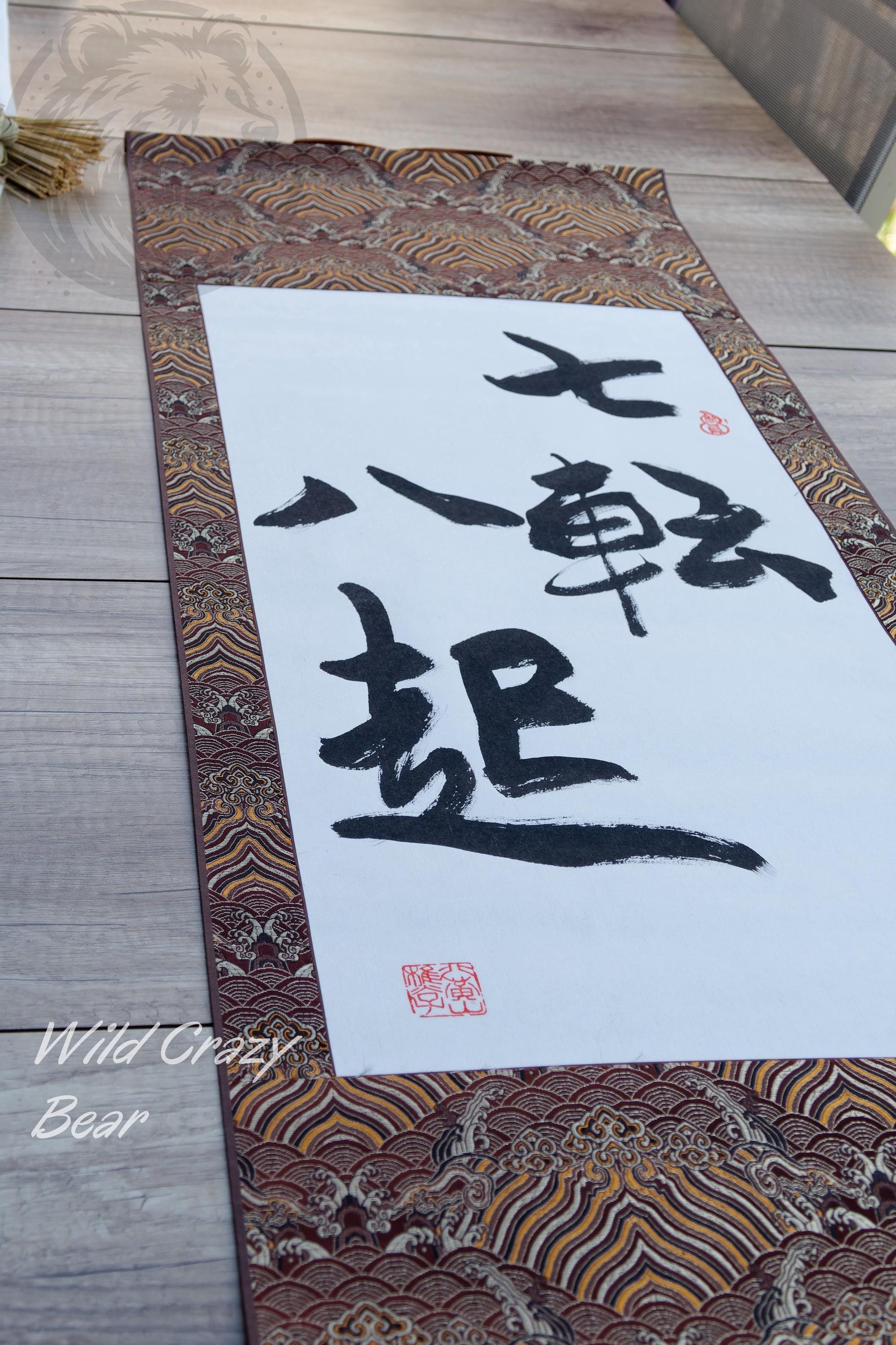 Proverb Calligraphy Kanji, Bravery quote hanging scroll, Dojo banners, Zen lounge, Martial arts banners wall art space