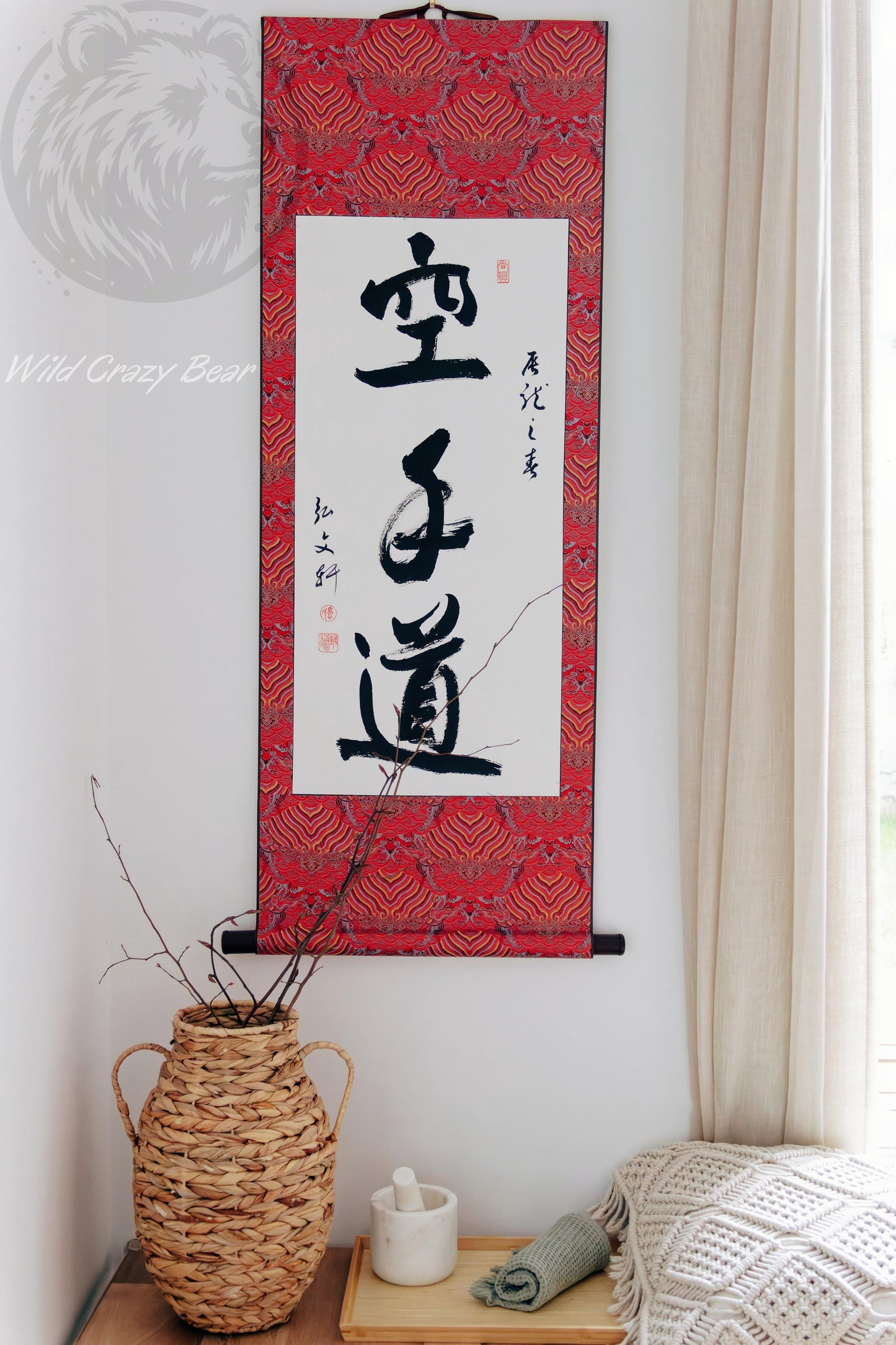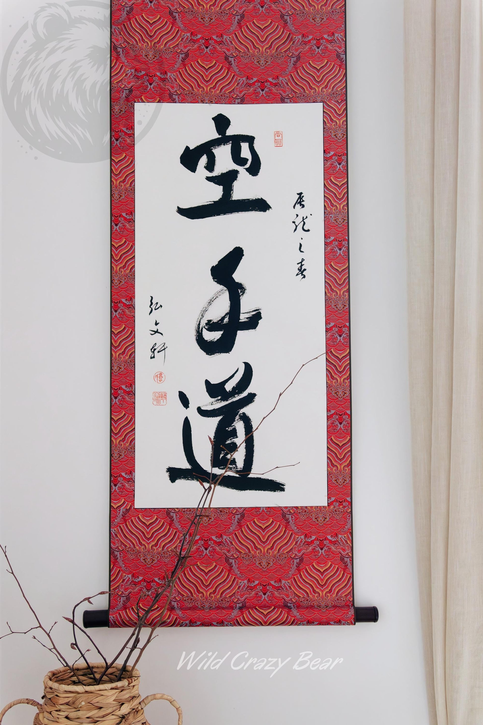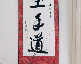 Handdrawn Calligraphy hanging scroll, Shodo, Tokonoma, Martial art gifts, Karate Kid Poster Motto Dojo Bujutsu gifts