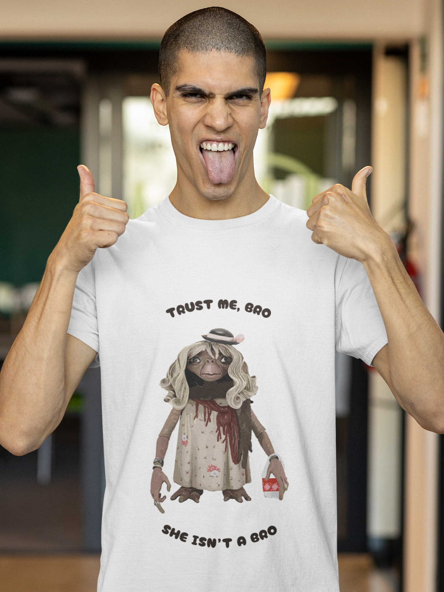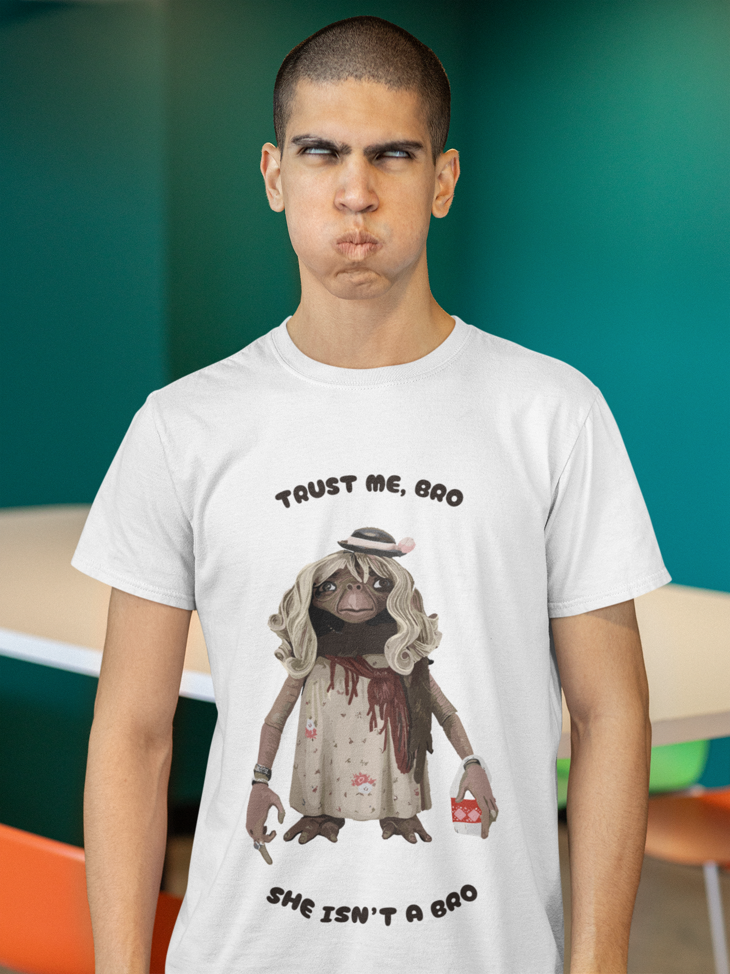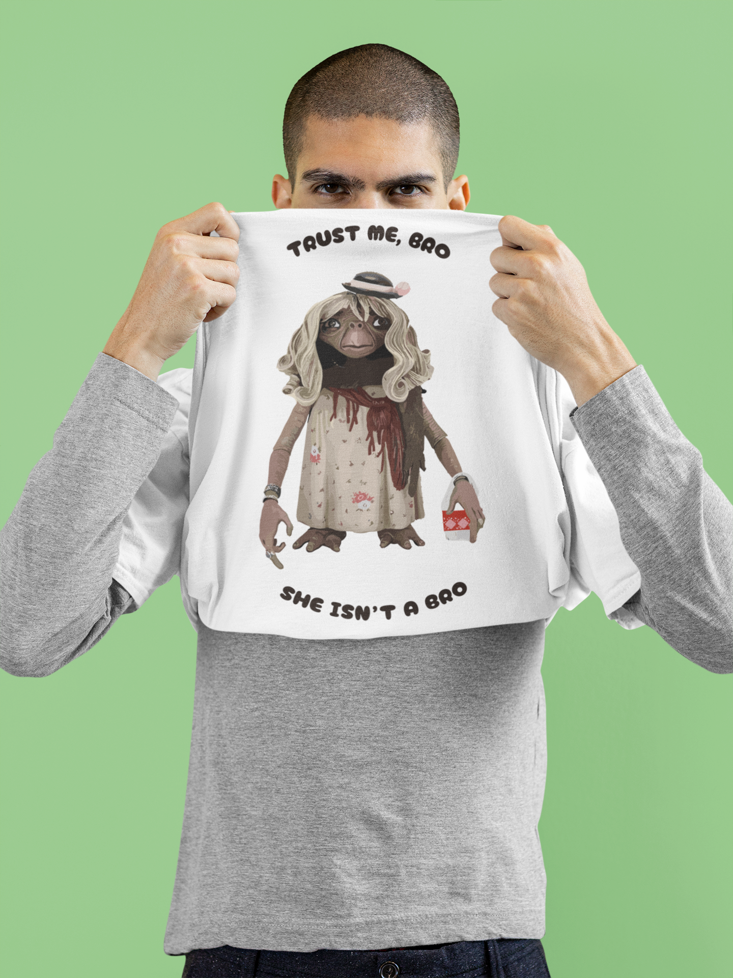 Une version revisitée de l’extraterrestre culte ET… mais cette fois, il cache bien son jeu. Citation d'actualité : « Trust me, bro. She’s not a bro» Candace-style humour Un message espiègle et plein de second degré qui ne passera pas inaperçu.